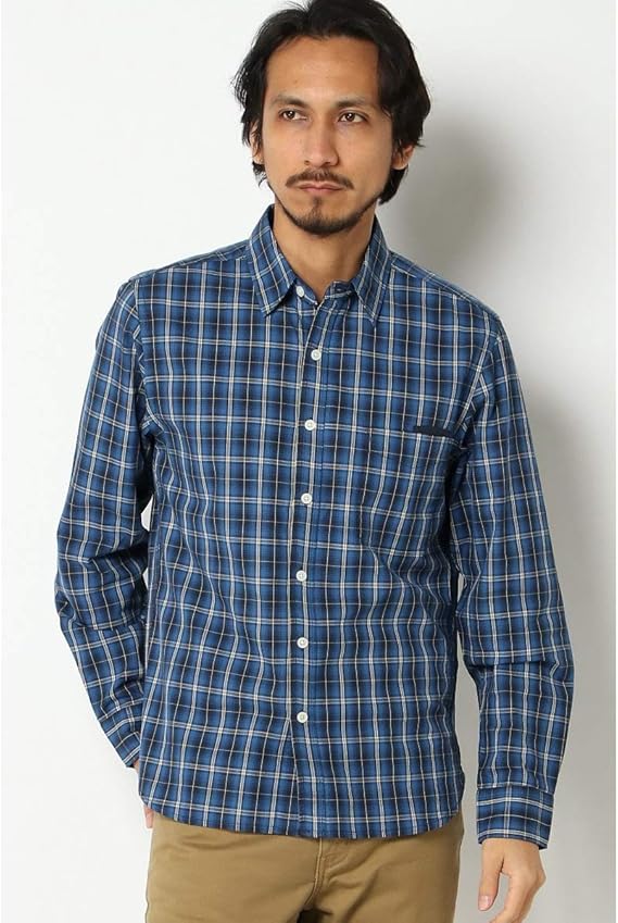 Amazon イッカ メンズ Ikka タータンチェックレギュラーシャツ ネイビー M シャツ 通販